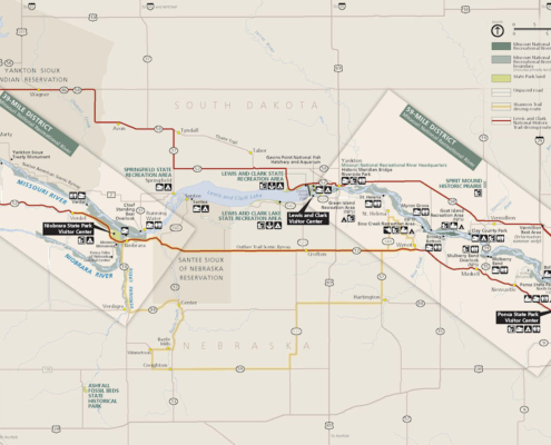Located in southeast South Dakota and northeast Nebraska, the Missouri National Recreational River (MNRR) protects over 100 free-flowing miles of the Missouri River and several of its tributaries. The park is divided into two sections: the 39-Mile District and the 59-Mile District, which are separated by Lewis and Clark Lake.