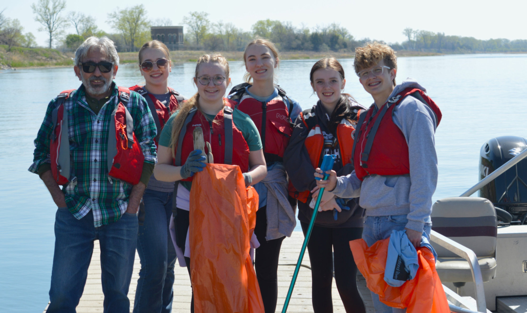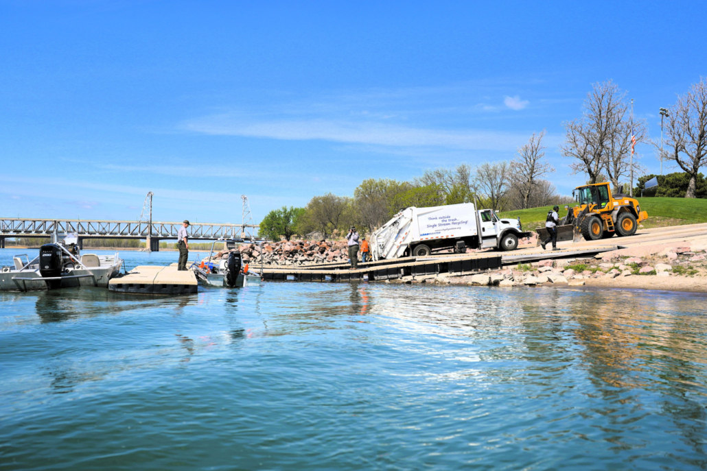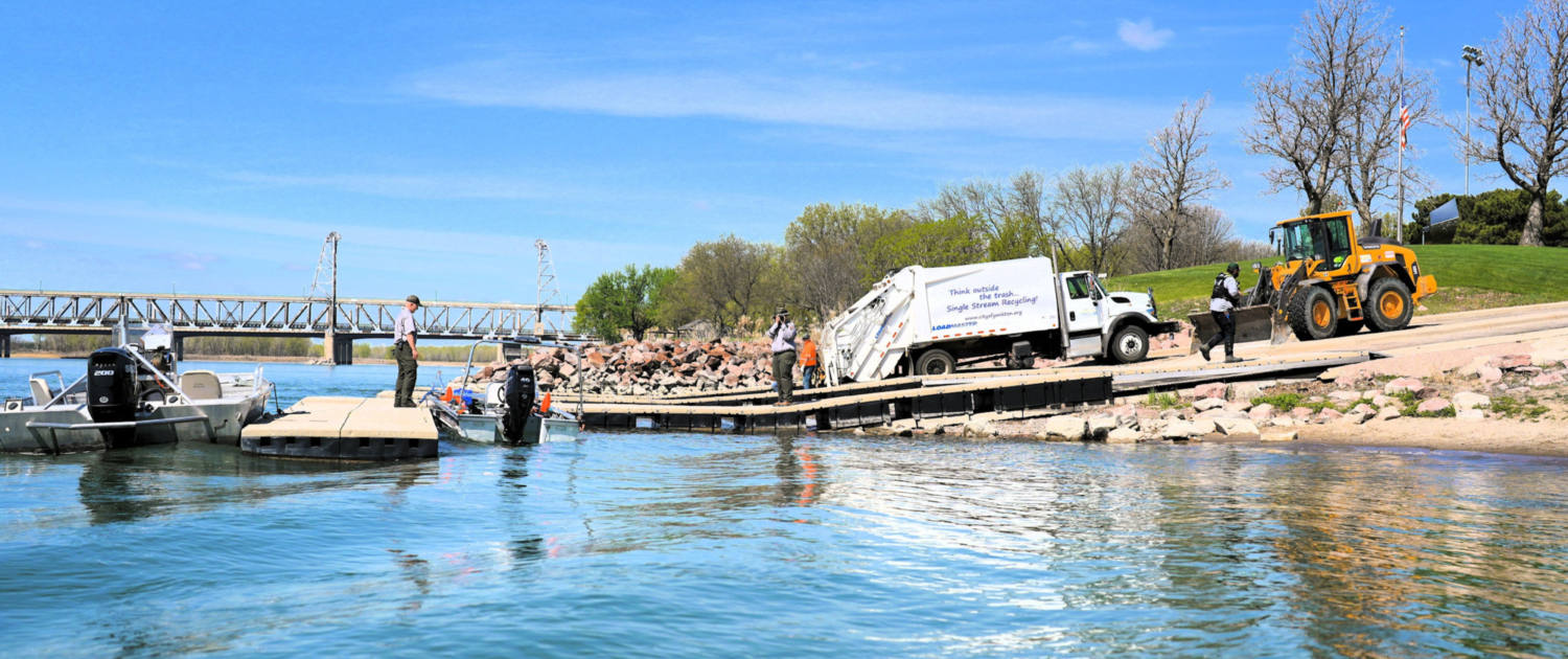 During the cleanup, volunteers work alongside federal and state agencies, the City of Yankton, and other partner organizations to collect litter and debris from islands and shorelines along the MNRR. Many volunteers head out onto the river on boats to access remote cleanup areas while others remain on land to clean up Riverside Park, Paddlewheel Point, and the Auld Brokaw Trail along Marne Creek.